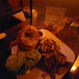 Me and a couple buddies went here to get food and a few drinks after a movie. The bar tender was awesome she came to our table quickly to take out dream order then was back a couple minutes later with them and to take out food order. I got the "slow burger" and it did not disappoint it was delicious! One friend got chicken strips and hush puppies and those were also delicious! Overall a great bar & I will be back soon